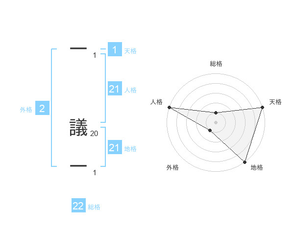 一 議一さんの人格は21画の5点!