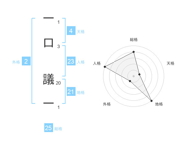 一口 議一さんの総格は25画の4点!