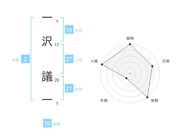 一沢 議一さんの総格は39画の5点!