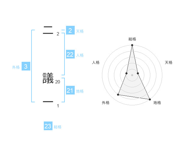 二 議一さんの総格は23画の5点!