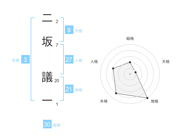 二坂 議一さんの総格は30画の2点!