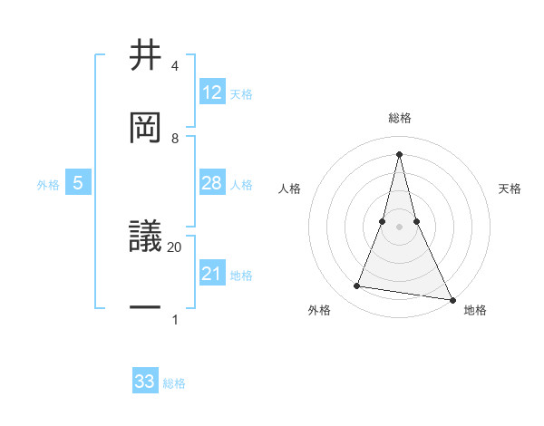 井岡 議一さんの総格は33画の4点!