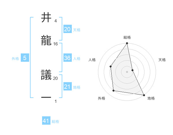 井龍 議一さんの天格は20画の1点!