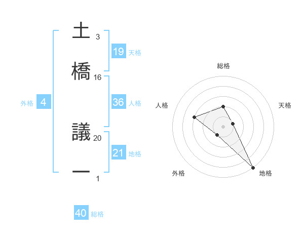 土橋 議一さんの総格は40画の2点!