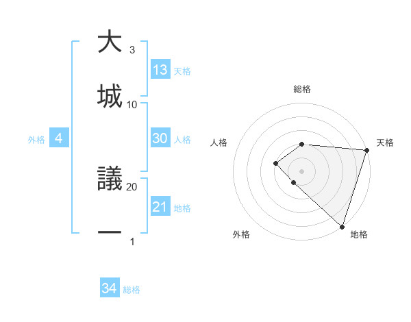 大城 議一さんの総格は34画の2点!