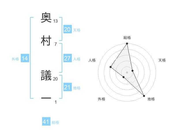 奥村 議一さんの総格は41画の5点!