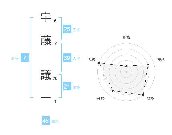 宇藤 議一さんを姓名の画数から五運を鑑定