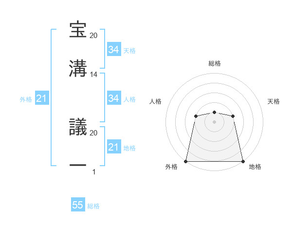 宝溝 議一さんの総格は55画の1点!