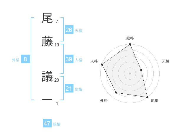 尾藤 議一さんを姓名の画数から五運を鑑定