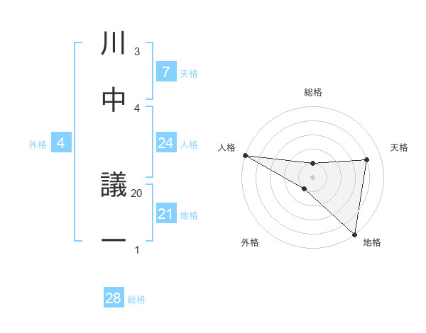 川中 議一さんの天格は7画の4点!