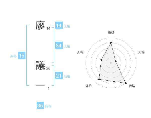 廖 議一さんの地格は21画の5点!