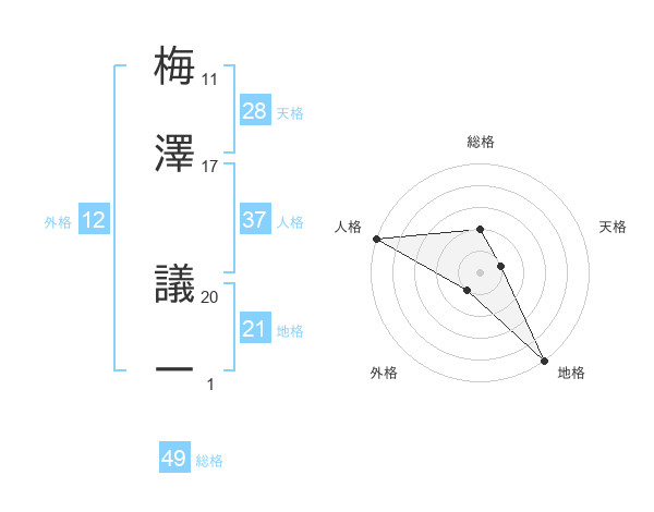 梅澤 議一さんを姓名の画数から五運を鑑定