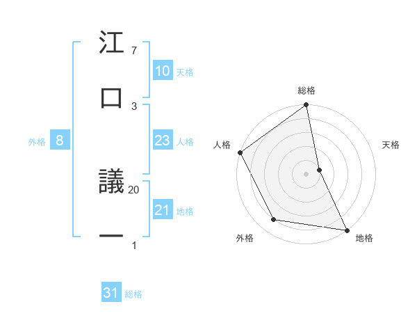 江口 議一さんの総格は31画の5点!