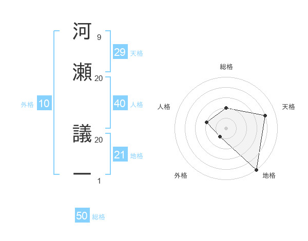 河瀬 議一さんの総格は50画の2点!