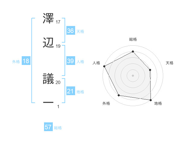 澤辺 議一さんの総格は57画の4点!