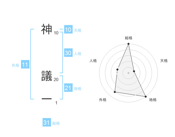 神 議一さんの総格は31画の5点!