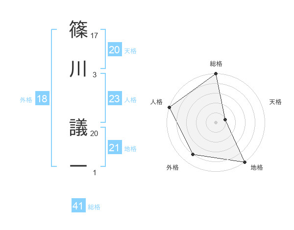 篠川 議一さんの総格は41画の5点!