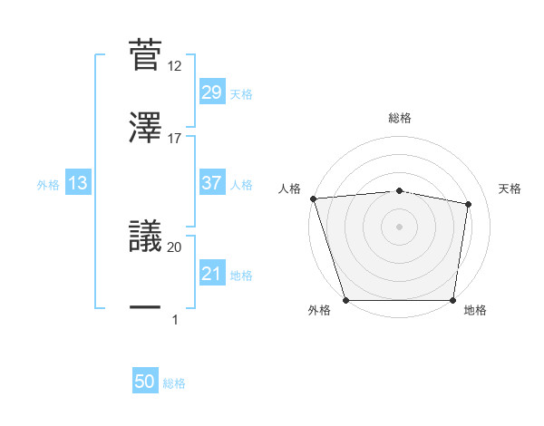 菅澤 議一さんを姓名の画数から五運を鑑定