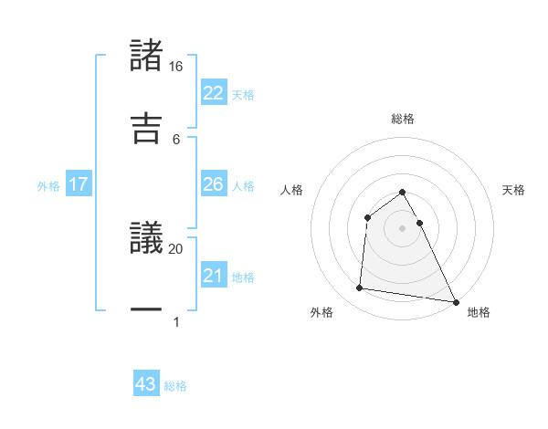 諸吉 議一さんを姓名の画数から五運を鑑定