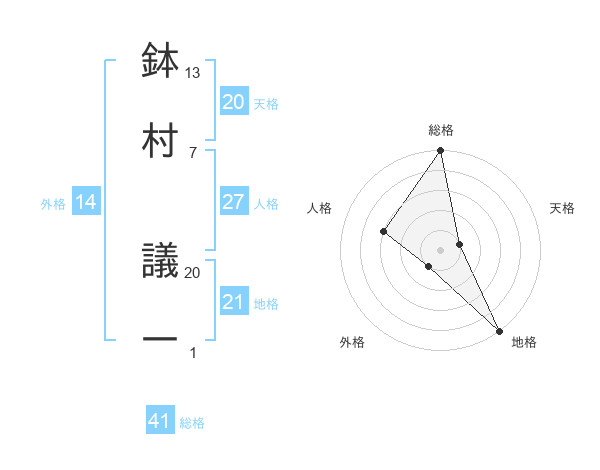 鉢村 議一さんを姓名の画数から五運を鑑定