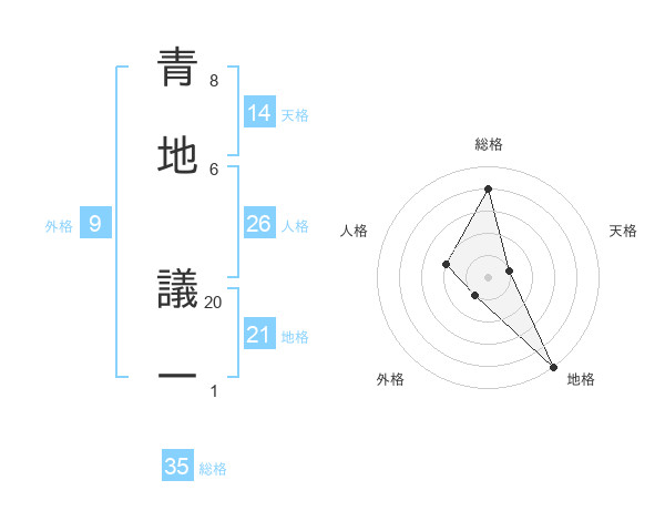 青地 議一さんの総格は35画の4点!