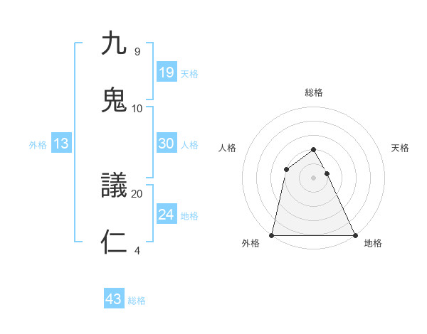 九鬼 議仁さんを姓名の画数から五運を鑑定