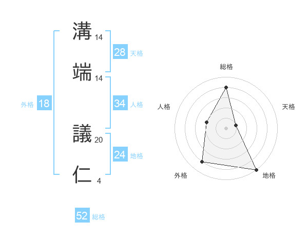 溝端 議仁さんの総格は52画の4点!