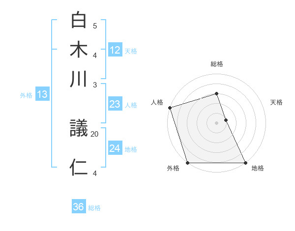 白木川 議仁さんを姓名の画数から五運を鑑定
