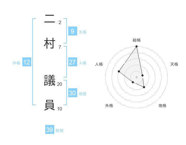 二村 議員さんの総格は39画の5点!