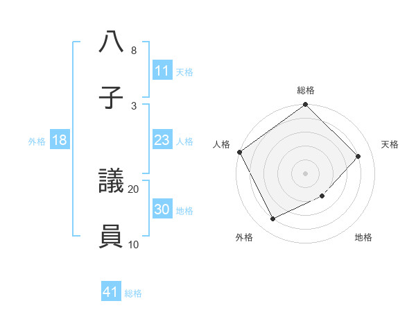 八子 議員さんの総格は41画の5点!