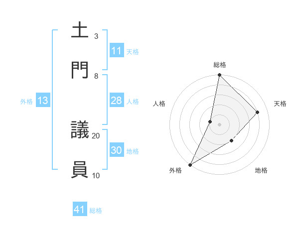 土門 議員さんの総格は41画の5点!