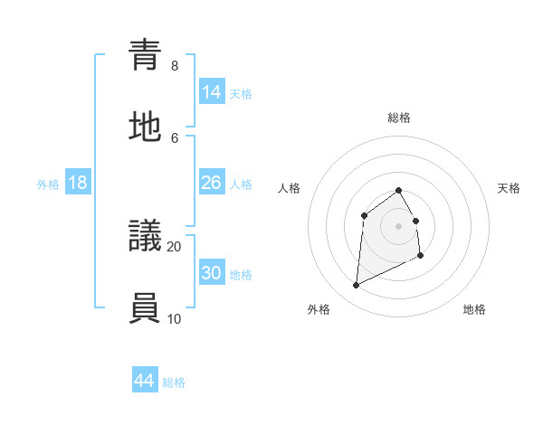 青地 議員さんの総格は44画の2点!