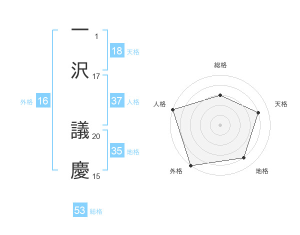 一沢 議慶さんを姓名の画数から五運を鑑定
