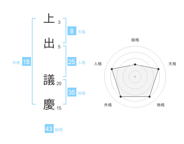 上出 議慶さんの総格は43画の2点!