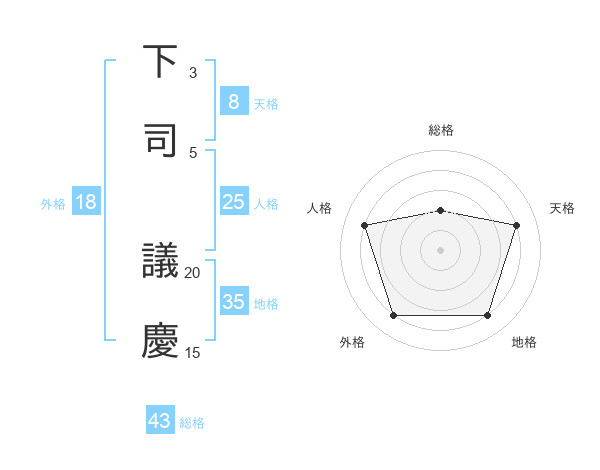 下司 議慶さんの総格は43画の2点!