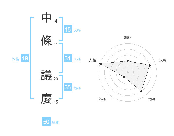 中條 議慶さんの総格は50画の2点!