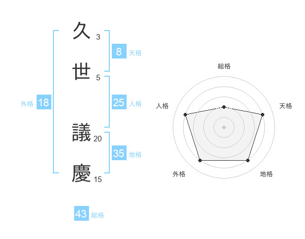 久世 議慶さんの総格は43画の2点!