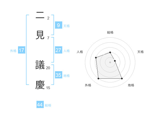 二見 議慶さんの総格は44画の2点!