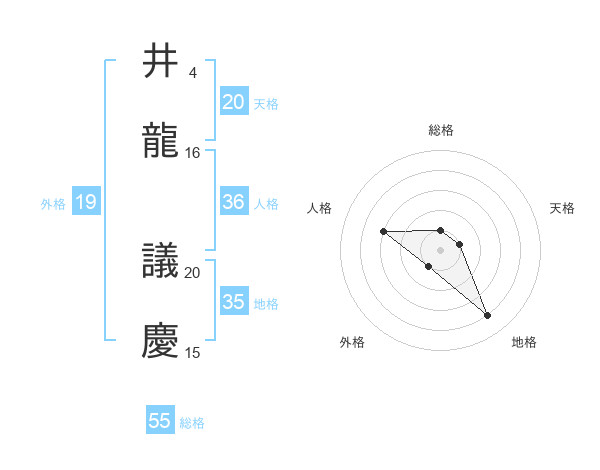 井龍 議慶さんを姓名の画数から五運を鑑定