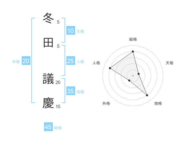 冬田 議慶さんの総格は45画の4点!