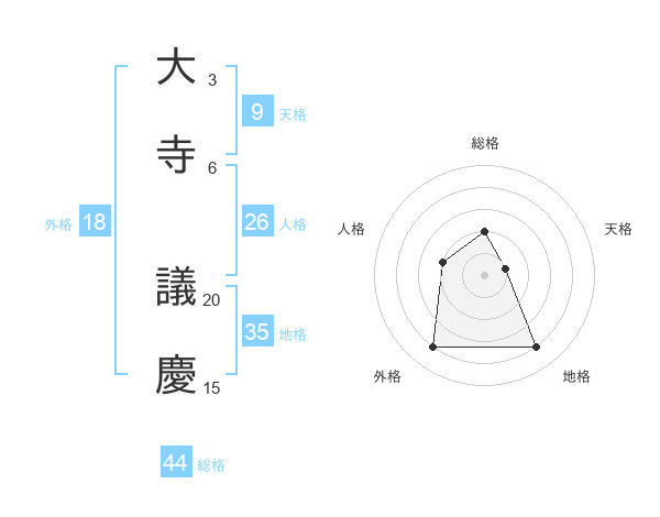 大寺 議慶さんを姓名の画数から五運を鑑定