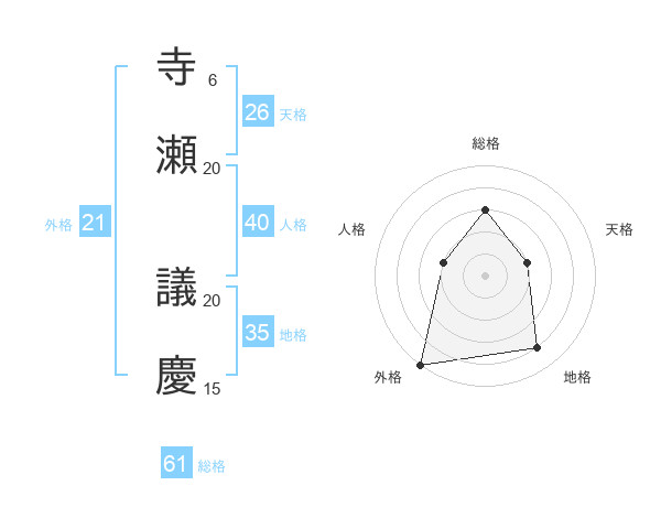 寺瀬 議慶さんを姓名の画数から五運を鑑定