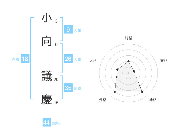小向 議慶さんの総格は44画の2点!