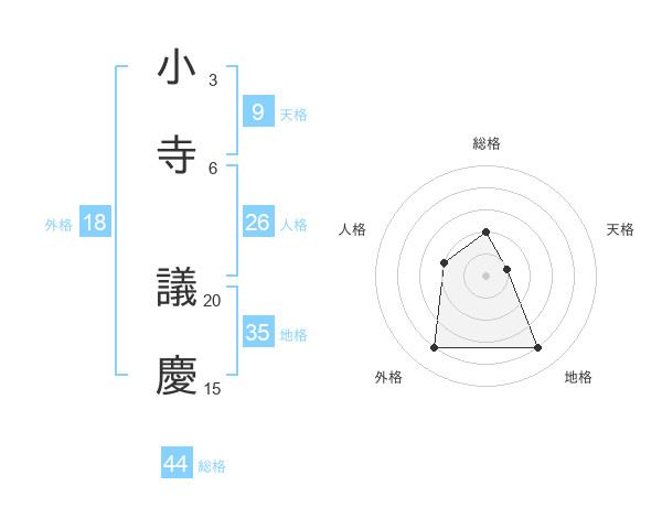 小寺 議慶さんの総格は44画の2点!