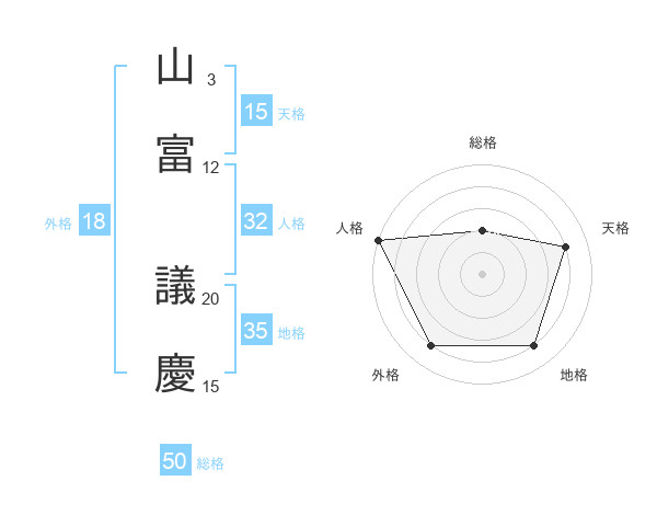 山富 議慶さんの総格は50画の2点!