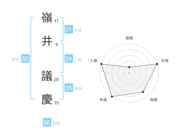 嶺井 議慶さんの総格は56画の1点!