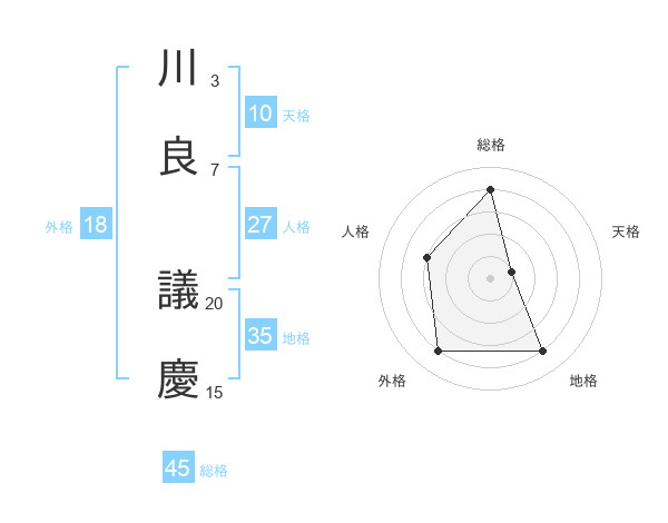 川良 議慶さんの総格は45画の4点!
