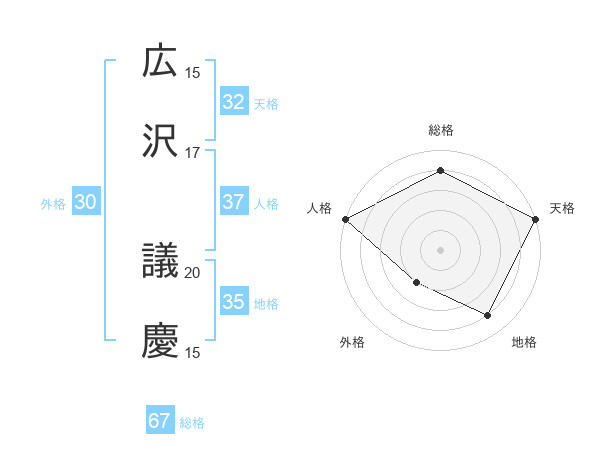 広沢 議慶さんの総格は67画の4点!