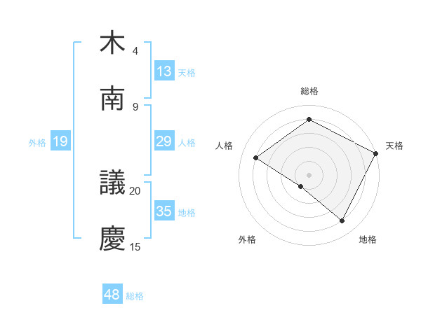 木南 議慶さんの総格は48画の4点!