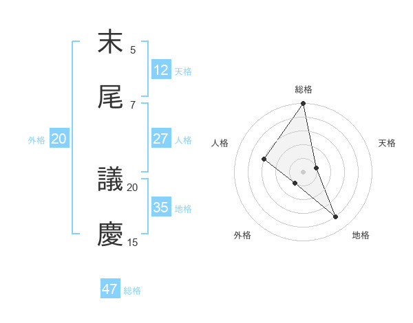 末尾 議慶さんを姓名の画数から五運を鑑定
